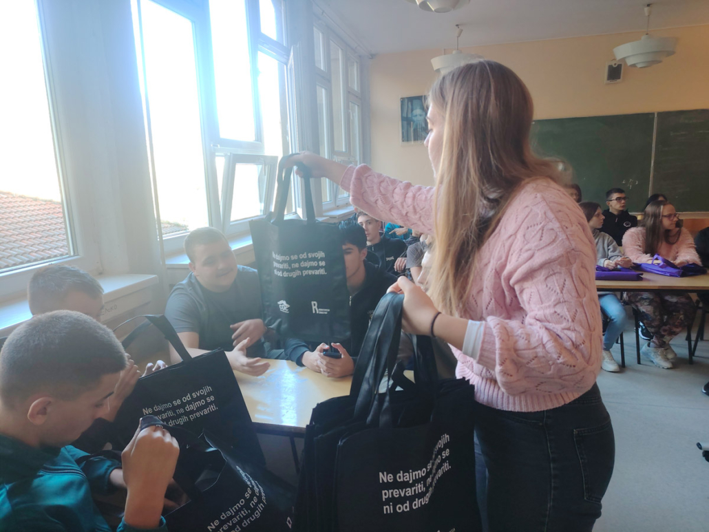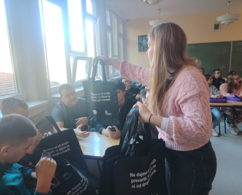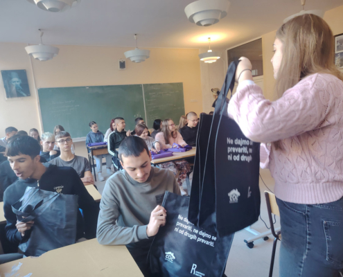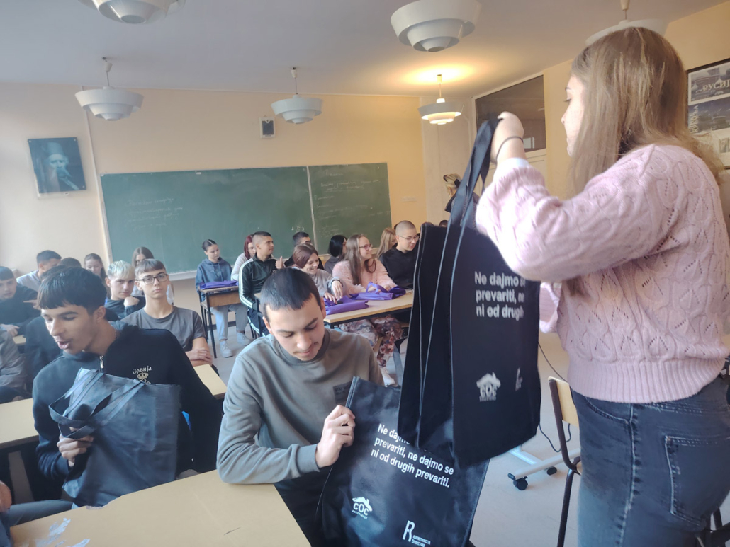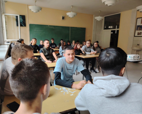 20. и 22. октобра нашу школу је посетило УГ СОС за жене и децу жртве насиља из Власотинца, са којим је потписан Меморандум о сарадњи. У току два дана организована су предавања о трговини људима за све разреде наше школе и радионице, након чега су ученици добили пригодне поклоне. За осмишљавање и споровођење едукативних радионица посебну захвалност желимо да изразимо едукаторки Антитрафикинг мреже и председници Удружења грађана СОС Власотнице за жене и децу жртве насиља, Светлани Шарић и њеним сарадницима/координаторима, Ивани Гориновић и Кристини Петровић. Радионице су биле конципиране на тај начин да се ученици прво упознају са основним појмом трговине људима и развијају свест о потенцијалним опасностима, затим развијање сарадње са надлежним институцијама и, најважније за нас, која је улога школе у борби против трговине људима – превенција и интервенција, као и упознавање ученика са различитим видовима подршке коју жртве могу добити.